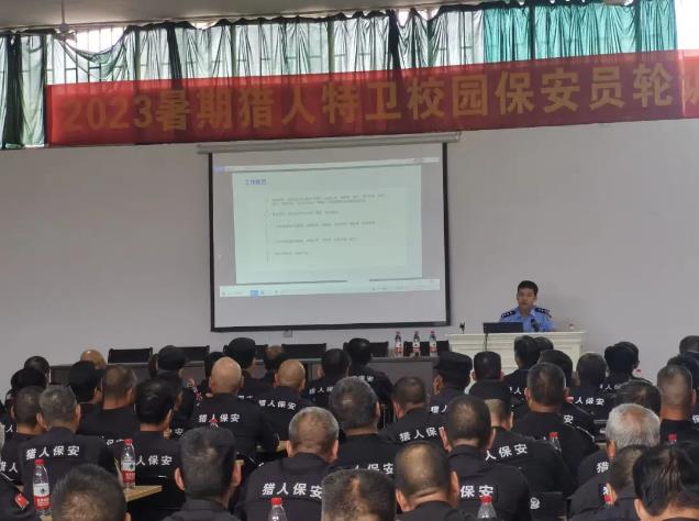 7.24全國保安行業主題宣傳日到來之際,獵人特衛安保集團聯合永康市公安局、永康市教育局有關主管部門,組織集團400余名校園保安人員開展專職集中培訓,提高校園保安人員的理論素養和實戰能力,深入推進校園安全“找堵防”工作,以此向全國保安行業主題宣傳日獻禮。