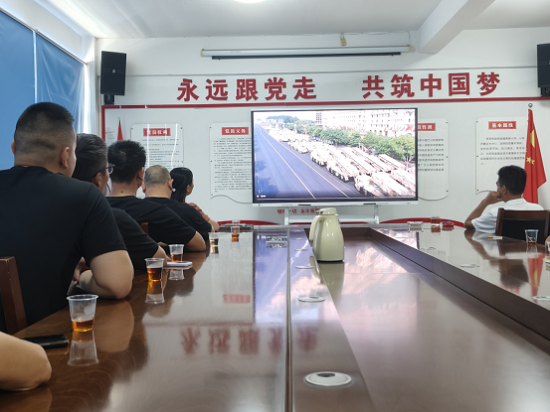 直播過程中,伴隨著莊嚴的國歌聲,五星紅旗在天安門廣場冉冉升起。會議室里,公司黨員及各部門負責人肅然起立,齊唱國歌。受閱部隊英姿颯爽,新型武器裝備逐一亮相,展現了我國國防力量的強大與現代化建設的輝煌成就。